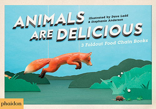 Everyone is hungry in Animals Are Delicious by illustrators Dave Ladd and Stephanie Anderson. So, what do they eat? Take a visual journey through three different food chains: forest, sky, and ocean. For example, what does a shrew eat? In one food chain, a shrew eats a black ground beetle, but someone else is also hungry…for the shrew! Kids can enjoy taking a storybook-style journey through each food chain, or they can stretch them out all the way and pick out similarities and differences between the food chains. The images created by Ladd and Anderson, which are made from a combination of mixed media “sets” and figurines placed in paper, are whimsical and reminiscent of dioramas found in a natural history museum.